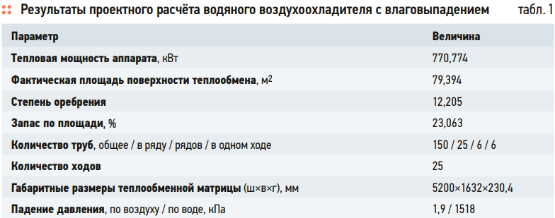 Результаты расчёта водяного воздухоохладителя с влаговыпадением приведены в табл. 1.