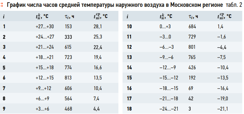 Для того, чтобы рассчитать годовое количество теплоты, воспользуемся графиком числа часов средней температуры наружного воздуха (табл. 2).