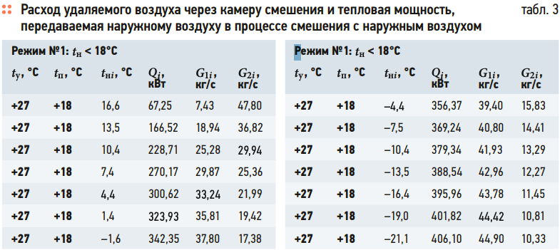 Рассчитаем экономию тепловой энергии за год (табл. 3) при применении рециркуляции вытяжного воздуха за период времени с температурой наружного воздуха ниже +18°C: