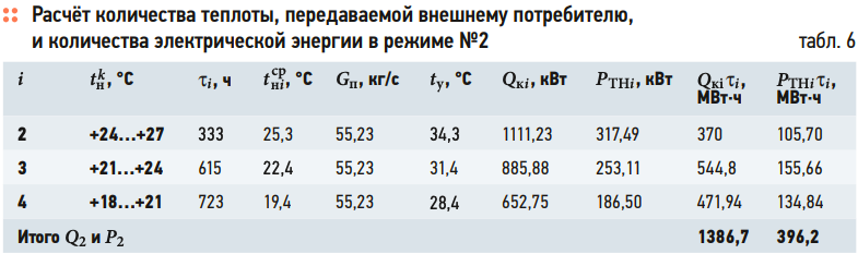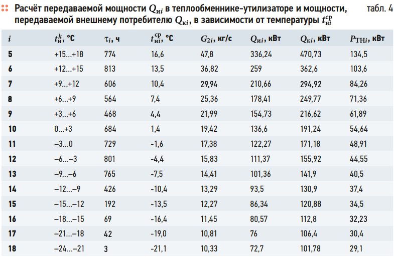 Оценим мощность, передаваемую внешнему потребителю посредством теплообменника-утилизатора и теплового насоса (табл. 4).