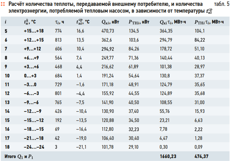 Количество электрической энергии, потребляемое тепловым насосом за рассматриваемый период времени (табл. 5):