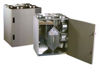 Утилизаторы тепла серии VM позволяют регулировать воздушный поток и поддерживать его установленное значение. Модель VM 1 имеет функцию автоматической разморозки. Одновременно размораживается половина теплообменника, при этом вентиляция продолжается. Прибор поставляется с кабелем питания и вилкой для заземленной розетки. Утилизаторы тепла серии VVX имеют производительность от 175 до 780 куб. м воздуха в час и эффективность утилизации тепла до 75% , блок теплообмена с противотоком, изогнутую вперед крыльчатку двигателей и встроенный термоконтакт. В состав всех утилизаторов тепла серии VVX входят вентиляторы, теплообменник с противотоком, фильтр и встроенный трансформатор. Очистку и демонтаж утилизаторов легко производить через специальную дверцу. Каждый утилизатор серии VVX имеет дренаж для отвода конденсированной воды и эффективный гаситель вибрации.