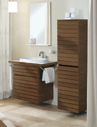 Функциональность новой коллекции заключается в наличии большого открытого пространства, которое идеально подходит для хранения необходимых вещей. Коллекция представлена в трех цветовых гаммах: из натурального дуба, придающего светлый натуральный оттенок, из ореха, обеспечивающего насыщенный цвет дерева, а также может быть покрыта белым лаком, придавая мебели современный дизайн. Удачное сочетание дизайна и материала вдобавок к функциональным преимуществам и применению светового эффекта придадут ванной комнате неповторимый стиль, теплую и чувственную атмосферу.