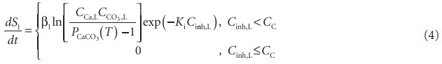 CCa,LCCO3,L = PCaCO3(T), гдеPCaCO3(T)— произведение растворимости карбоната кальция при данной температуре T.Скорость роста или растворения кристалла, согласно экспериментальным данным [5] и теоретическим выкладкам [7, 8],может быть представлена: