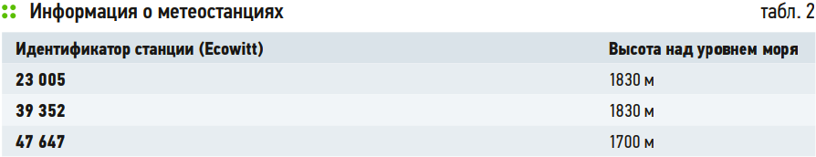 В рамках работы использовались данные метеостанций, расположенных на расстоянии примерно 40 км друг от друга, за период времени с 23 ноября 2021 года по 22 ноября 2022 года. Метеорологические данные включают в себя данные о средней скорости ветра, солнечном излучении (GHI), температуре воздуха и атмосферном давлении и были получены из базы данных Ecowitt.