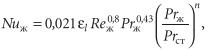 - принимаем отношение Prж/Prст = 1, т.к. считаем температуру внутренней поверхности трубы бесконечно приближающейся к температуре теплоносителя.