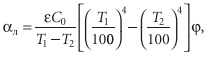 где Nuж — число Нуссельта для воздуха, омывающего трубу; Grж — критерий Грасгофа для воздуха. Коэффициент теплообмена излучением αл определяем по формуле [9]: