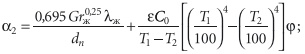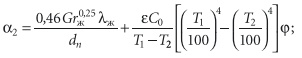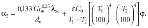 где λж — коэффициент теплопроводности теплоносителя [Вт/(м⋅К)].Коэффициент теплообмена на наружной поверхности трубы или изоляции α2 определяется с учетом влияния двух видов теплообмена — конвекции и излучения [9]: α2 = αк + αл.