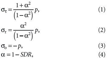В наиболее нагруженном месте, т.е. на внутренней поверхности стенки трубы, указанные напряжения могут быть вычислены по следующим формулам: