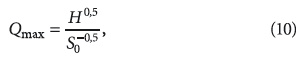 где H — полный гидростатический напор, равный разности отметок слоя воды на крыше и устья водосточного стояка или водосточного выпуска; S0 — полное гидравлическое сопротивление расчетного участка внутренних водостоков.
