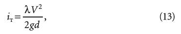 где l — коэффициент гидравлического трения, определяющий в долях динамического давления линейную потерю на длине трубопровода, равной величине его внутреннего диаметра; V — средняя скорость течения стоков; g — ускорение свободного падения.