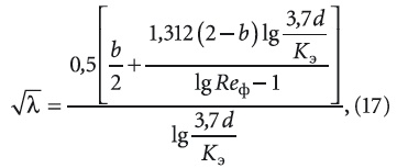 При этом коэффициент гидравлического трения l следует вычислять по формуле, справедливой для всех областей гидравлического сопротивления труб. Согласно этой формуле: