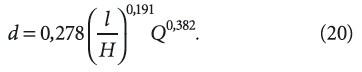 Третье допущение состоит в том, что длина l будет на 20 % больше H. При этом формула для определения расчетного диаметра труб для внутренних водостоков, работающих в напорном режиме, упроститься и примет вид: