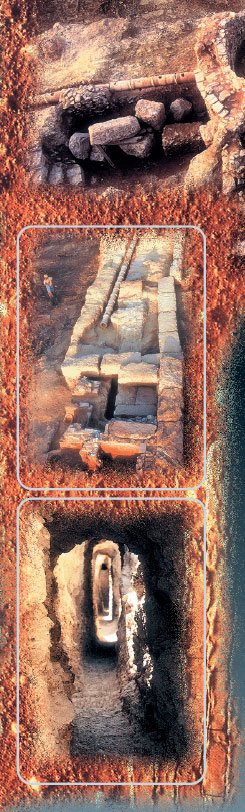 Расположение могил таково, что туннель под ними не функционирует, скорее всего из-за того, что при их устройстве его разрушили. * Расстояния между станциями Акрополис, Синтагма, Евангелисмос Панэпистимиу (Университет) — от 800 м до 1,5–2,0 км. Весь район только в границах этих станций около 8 км2. Итак, мы можем сделать вывод о том, что в античных Афинах уже в VI–V веках до н.э. существовала разветвленная единая (или, по крайней мере, единообразная) унифицированная система водоснабжения и водосброса.
