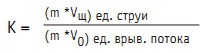 Для оценочных расчетов можно принять равенство плотностей врывающегося воздуха и истекающей струи, тогда параметр К при односторонней боковой подаче —