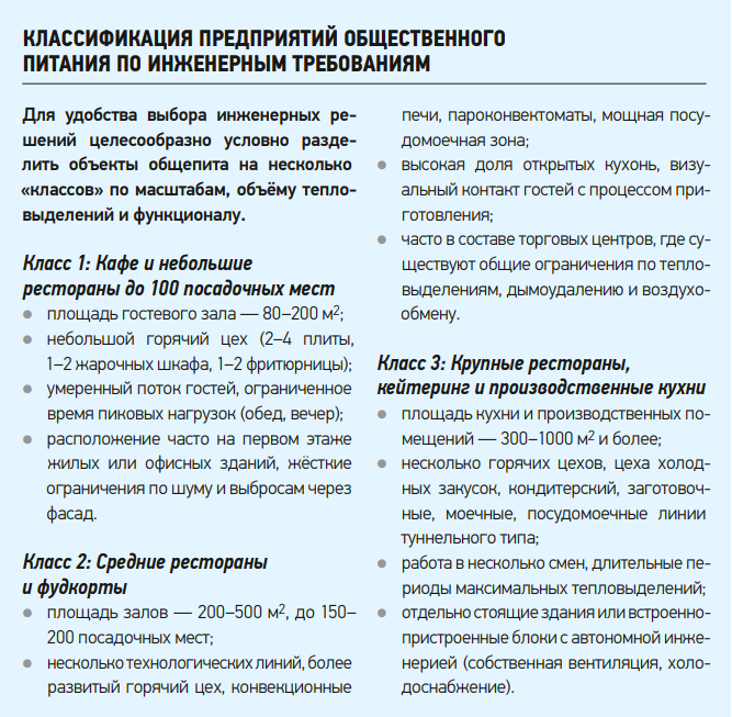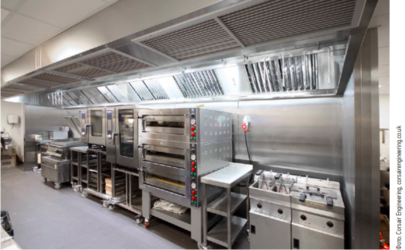 - высокие требования к очистке жира, дыма и запаха, чтобы не загрязнять фасады и не превышать допустимые концентрации запахов (ориентировка на местные санитарные и экологические нормы);