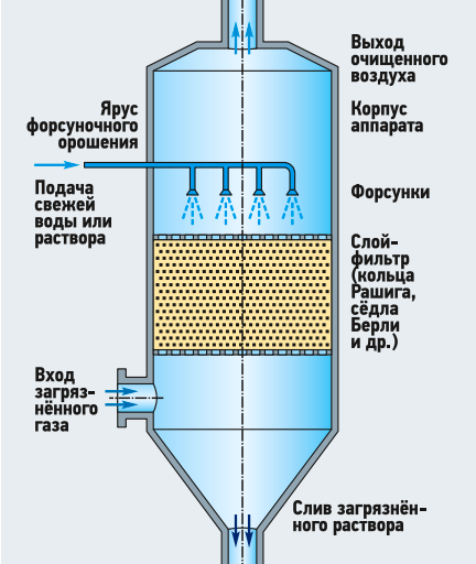 Принцип работы мокрого скруббера:
