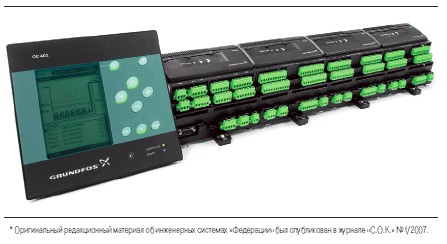 Современные производители оснащают инженерное оборудование элементами автоматики разного уровня — от датчиков до шкафов управления и терминалов. Если взять для примера инженерные сети, можно выделить компанию Grundfos, выпускающую широкий спектр насосов. Так, для мониторинга и контроля работы канализационных насосов была разработана система Modular Controls (сегодня шкафы управления на базе этой разработки выпускаются на российском заводе концерна в подмосковной Истре).
