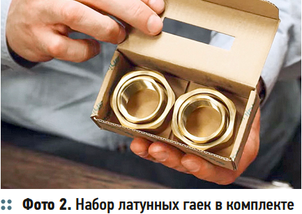 2. Практичная комплектация, включающая (в штатном наборе) латунные гайки и прокладки.