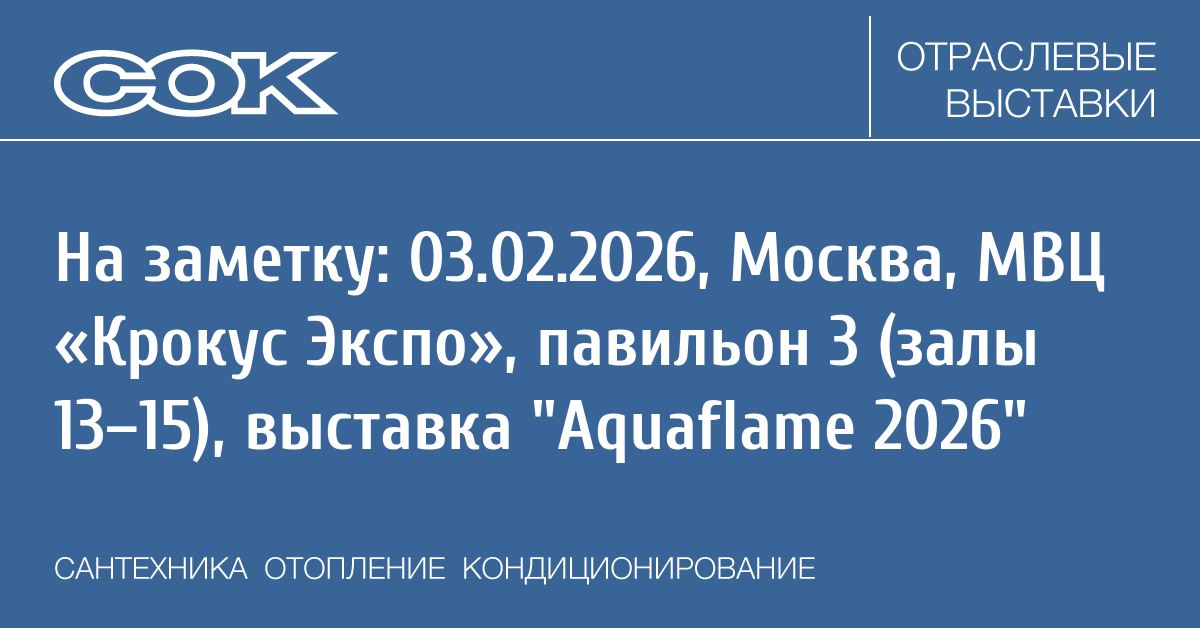 - устанавливать персональные «живые» бизнес-контакты на международной выставке комплексных инженерных решений Aquaflame 3–6 февраля 2026