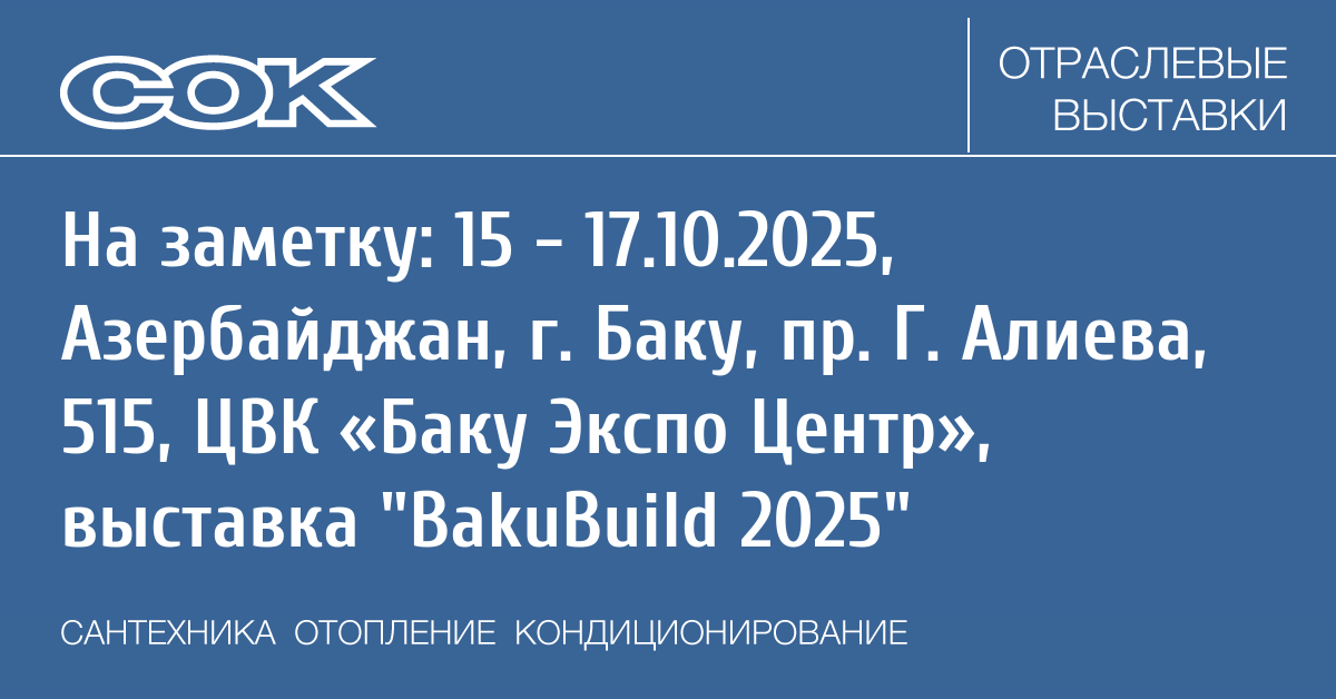 30-я Юбилейная Азербайджанская Международная Выставка «Строительство» — BakuBuild 2025