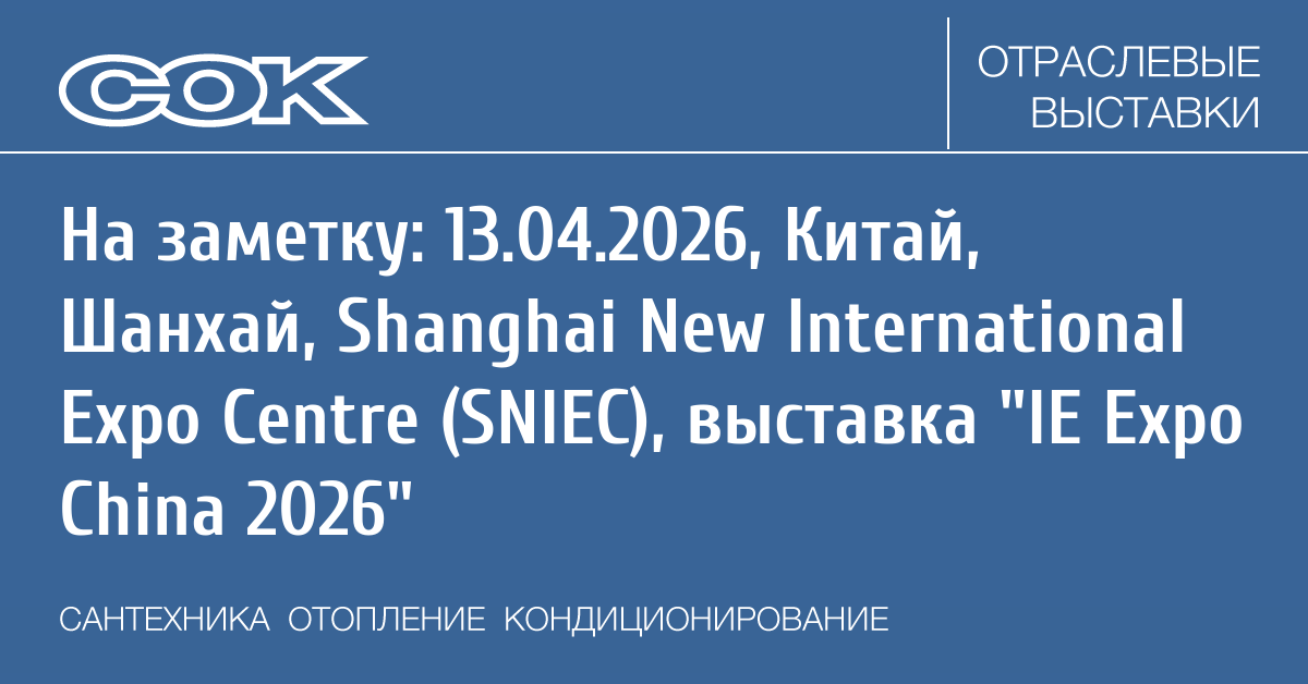 Дата и место: 13–15 апреля 2026 года, Китай, Шанхай, Shanghai New International Expo Centre (SNIEC)