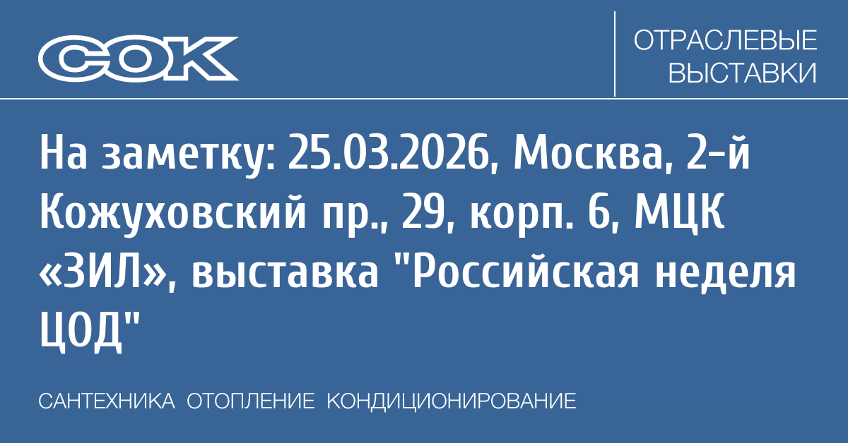Крупнейшее мультиформатное событие весны 2026 г. по инфраструктуре ЦОД состоится 25–27 марта 2026 г. в МЦК «ЗИЛ».