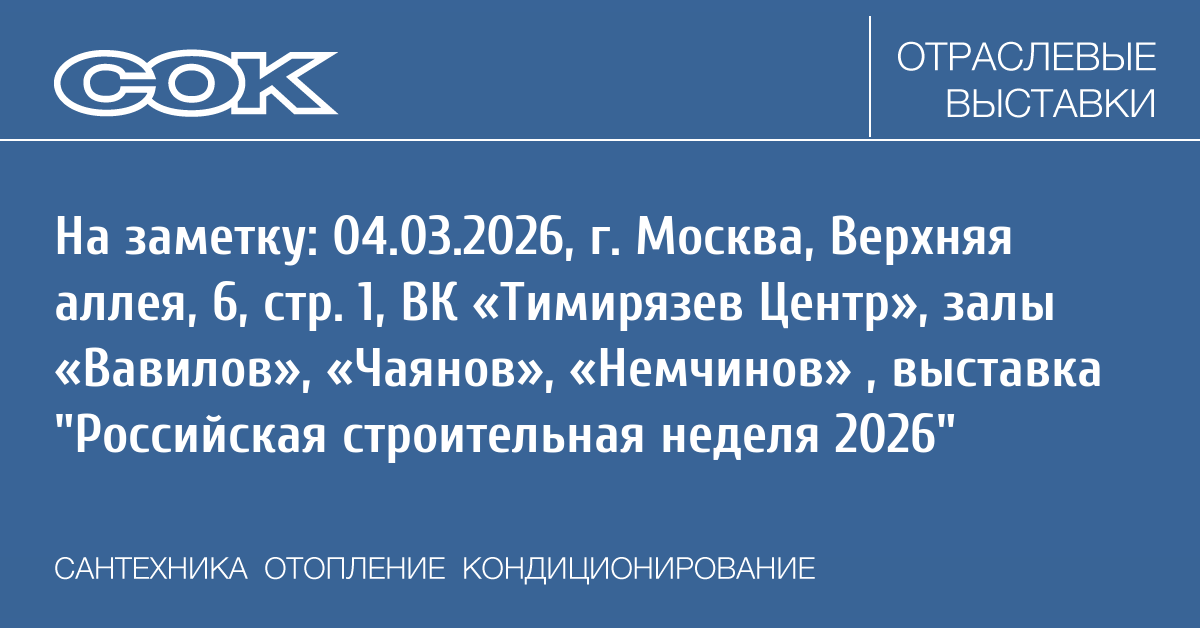 С 4 по 6 марта 2026 года ключевое отраслевое событие — «Российская строительная неделя», объединяющая выставки RosBuild и «Мир стекла», впервые пройдет в Выставочном комплексе «Тимирязев Центр».