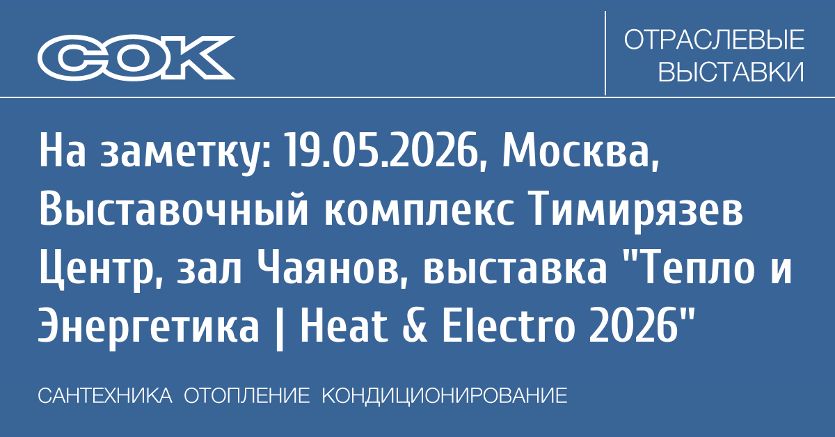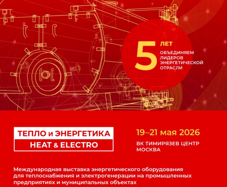 5-я Юбилейная выставка малой и большой энергетики: международная выставка энергетического оборудования для теплоснабжения и электрогенерации на промышленных предприятиях и муниципальных объектах Тепло и Энергетика пройдет с 19 по 21 мая 2026 года в Тимирязев Центре, Москва.