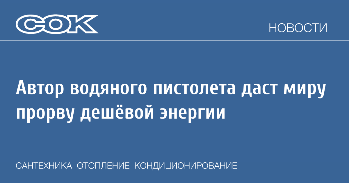 Автор водяного пистолета даст миру прорву дешёвой энергии