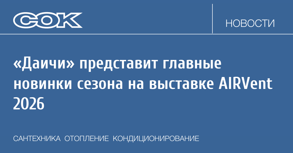 «Для нас участие в AIRVent 2026 —это стратегическая презентация Даичи как архитектора климатического комфорта и интегратора комплексных решений для самых разных типов объектов, — отмечает директор департамента дилерских продаж Александр Овсянников. — Мы стремимся, чтобы на нашем стенде специалисты за один визит могли познакомиться с новинками ассортимента, увидеть будущее отрасли и убедиться в надежности решений для реализации их проектов».