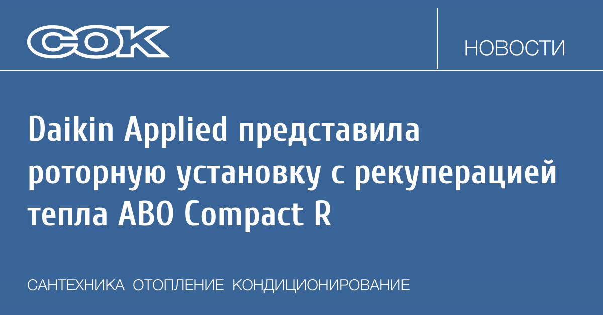 Компания Daikin Applied расширила линейку компактных приточно-вытяжных установок, представив Compact R — роторную установку с рекуперацией тепла, предназначенную для коммерческих проектов в условиях ограниченного монтажного пространства. Компания отмечает, что решение разработано для повышения энергоэффективности при сохранении компактных габаритов.