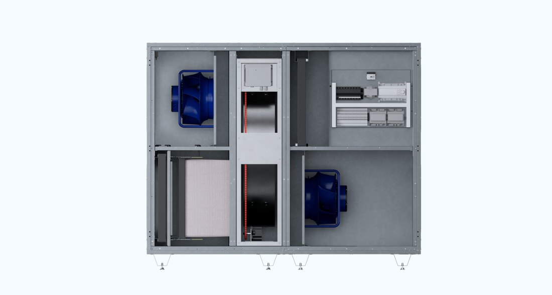По информации компании, в Compact R применяется роторное колесо рекуперации тепла (в конденсационном или сорбционном исполнении), способное утилизировать как явное, так и скрытое тепло, передавая энергию от удаляемого воздуха приточному. Стандартная фильтрация соответствует уровню ePM1 50% (F7) для приточного воздуха и ePM10 75% (M5) для возвратного. Устройство сертифицировано Eurovent, что подтверждает заявленные эксплуатационные характеристики.