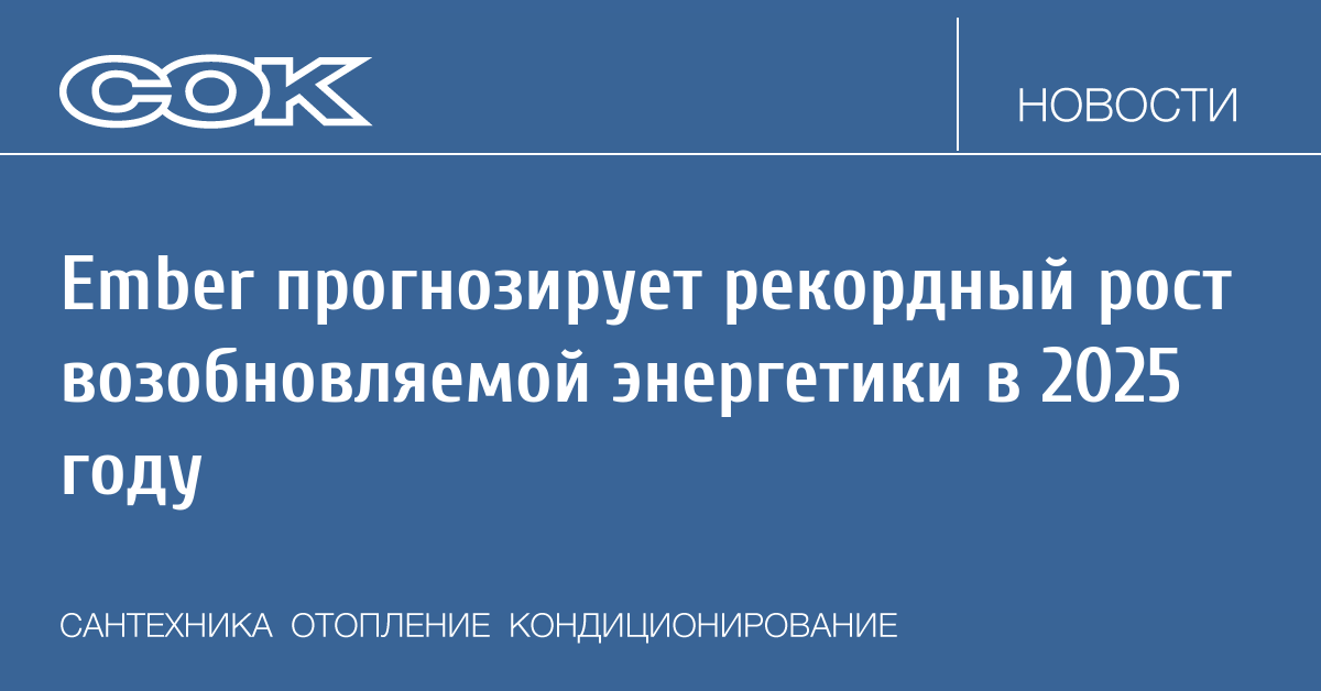 Аналитический центр Ember опубликовал прогноз развития возобновляемой энергетики в мире на текущий год.