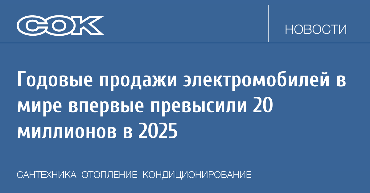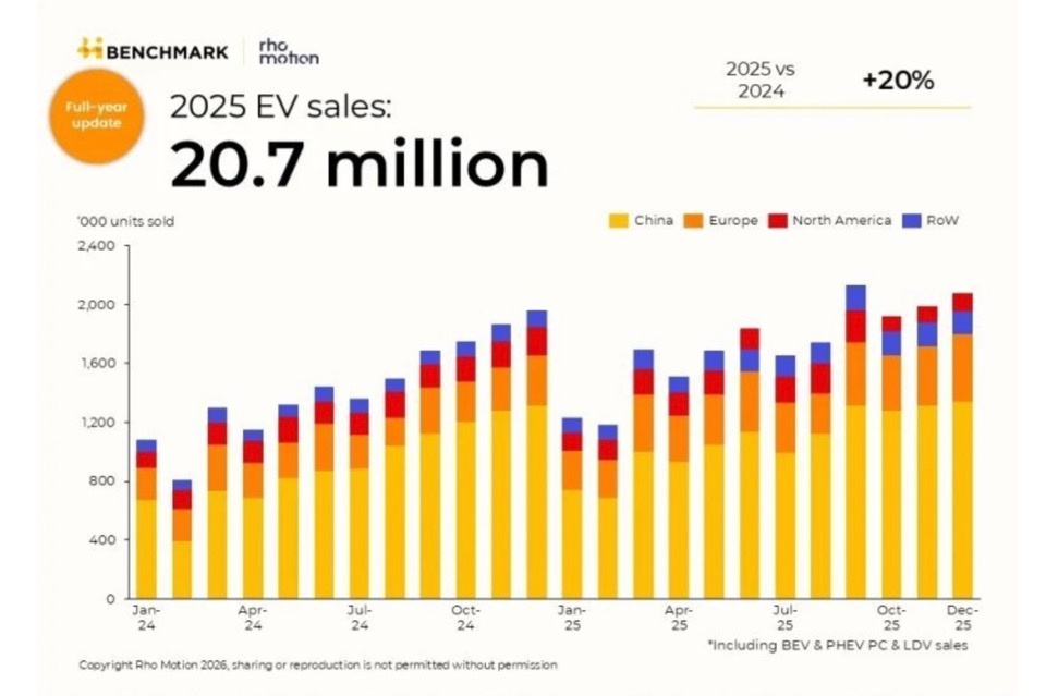В 2025 году продажи электромобилей составили 20,7 млн единиц, что на 20% больше, чем в 2024 году.