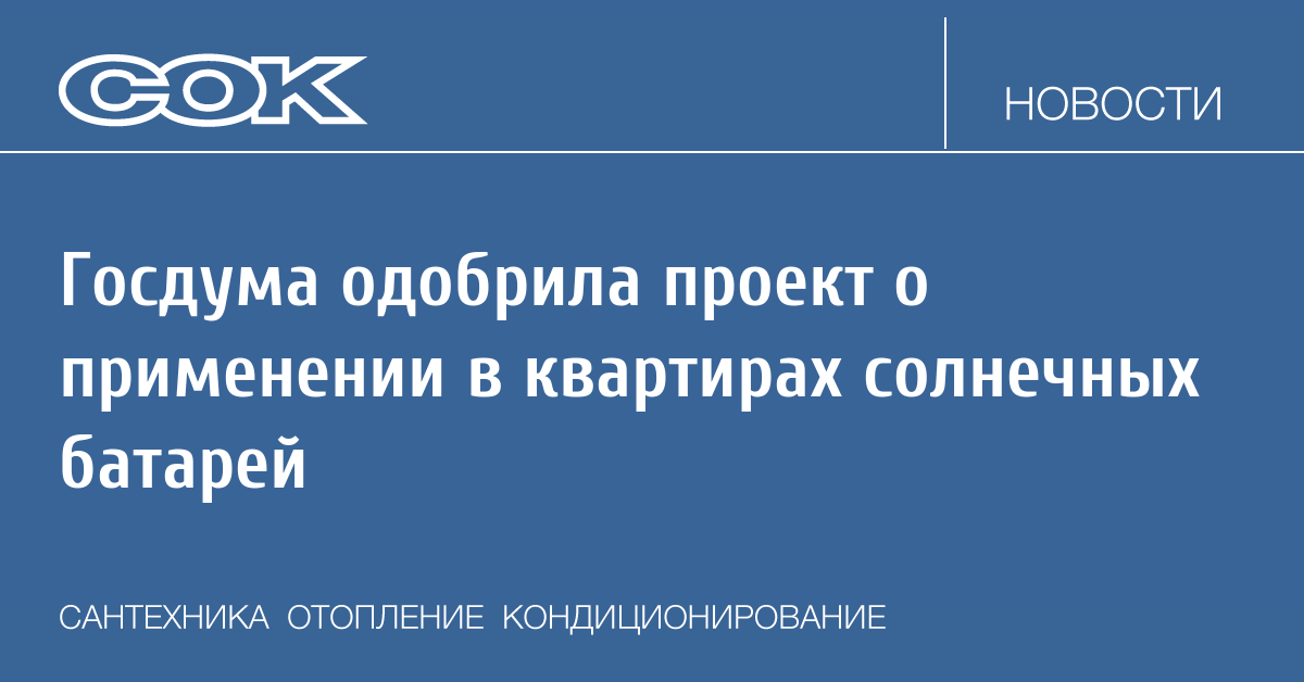 Депутаты Государственной думы приняли в первом чтении законопроект, который снимает ограничения на использование объектов микрогенерации (солнечных батарей, ветрогенераторов) в многоквартирных домах. Данный законопроект был внесен в парламент правительством.