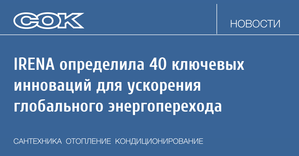Международное агентство по возобновляемым источникам энергии (IRENA) опубликовало доклад с описанием 40 технологических и системных инноваций, которые могут изменить мировую энергетику, обеспечить больше людей электричеством и сделать энергосистемы надежнее.