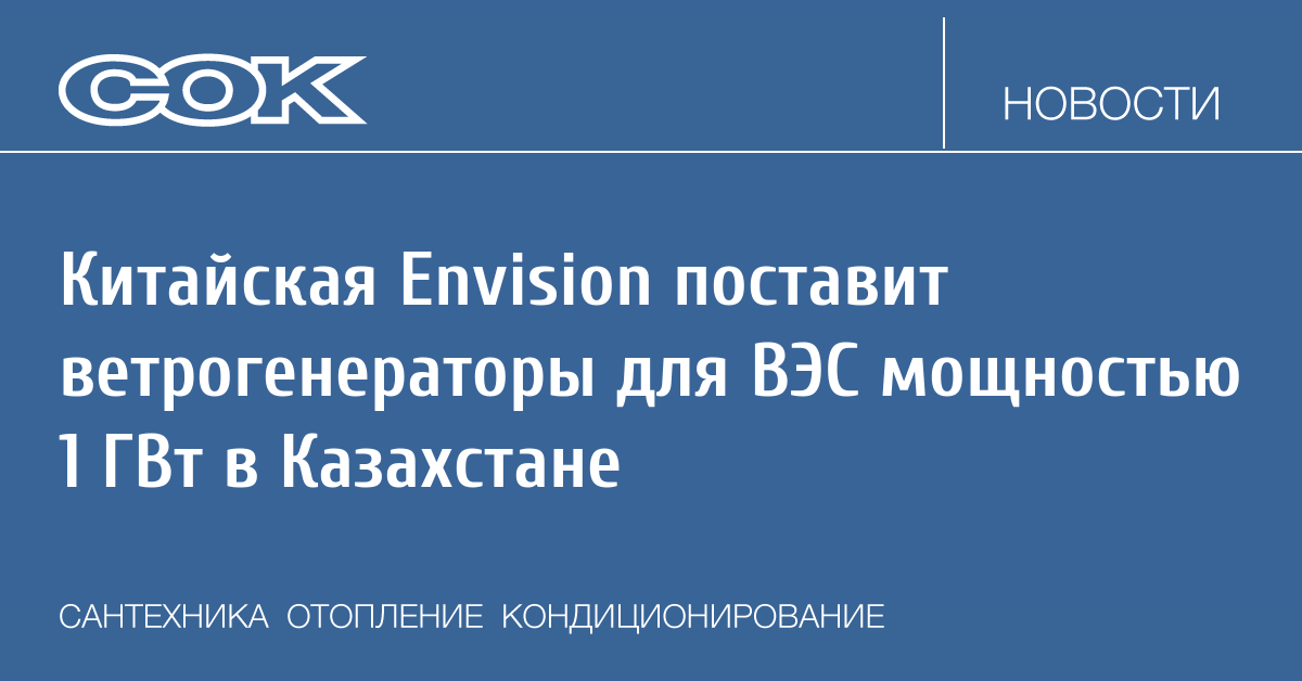 Компания Envision Energy, один из крупнейших производителей ветряных турбин в мире, заключила контракт на поставку 124 ветрогенераторов для проекта ВЭС «Мирный» мощностью 1 ГВт в Казахстане.