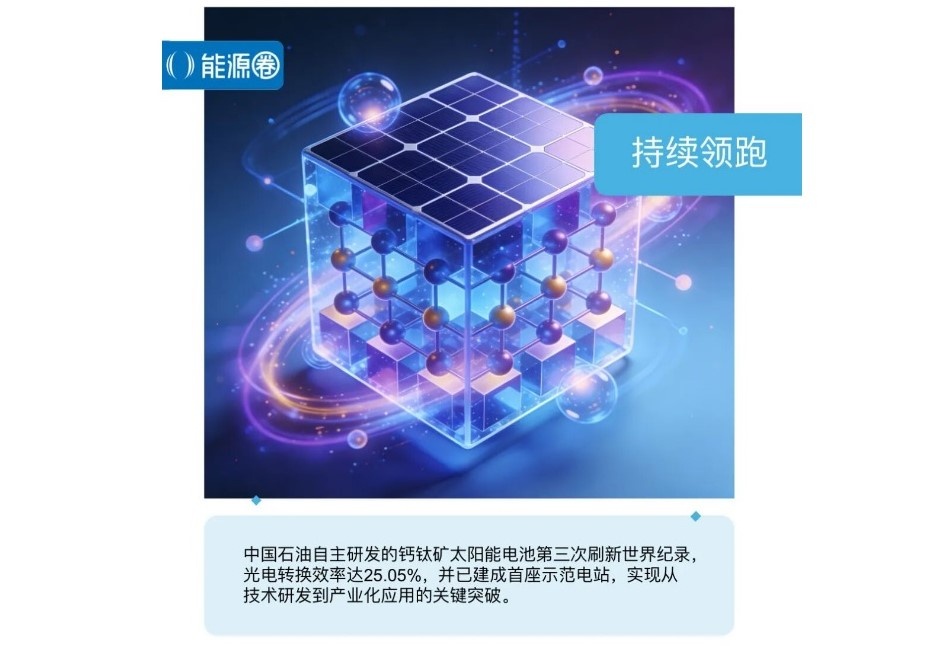 Группа по новым энергетическим фотоэлектрическим технологиям в Научно-исследовательском институте инженерных материалов CNPC объявила, что её широкозонный перовскитный солнечный элемент с энергией 1,68 электровольт (эВ) достиг сертифицированного КПД фотоэлектрического преобразования 25,05%.