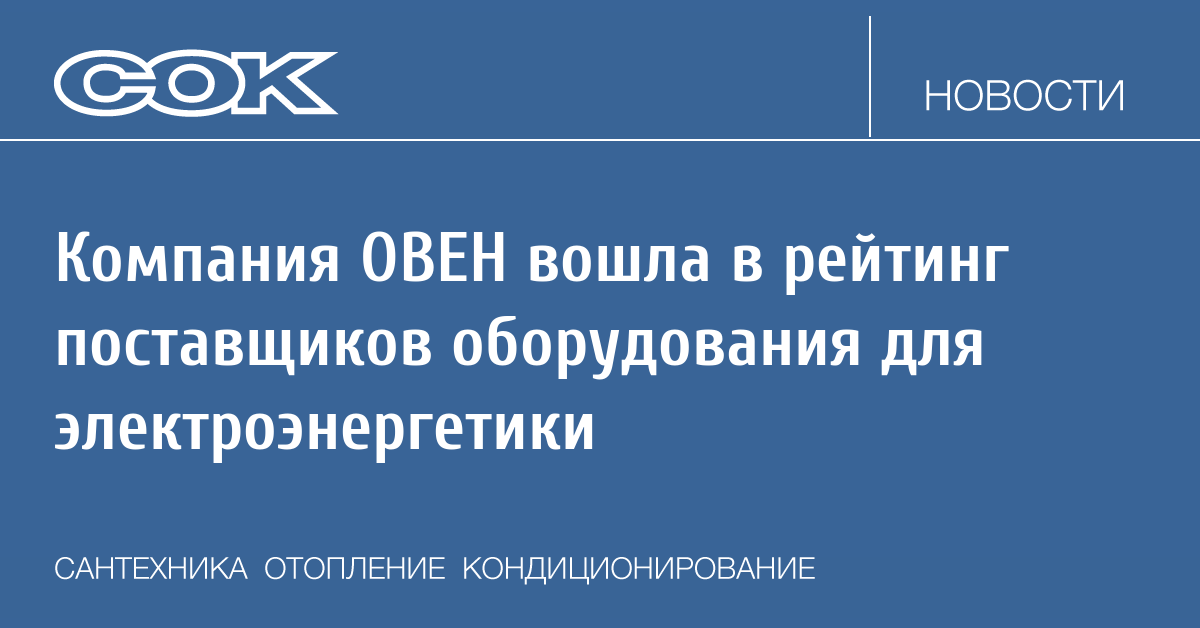 По итогам исследования Рейтингового центра поставщиков топливно-энергетического комплекса (ТЭК) компания ОВЕН вошла в число наиболее востребованных производителей и была отмечена в категории «КИПиА и АСУ ТП» рейтинга поставщиков оборудования и материалов для электроэнергетики.