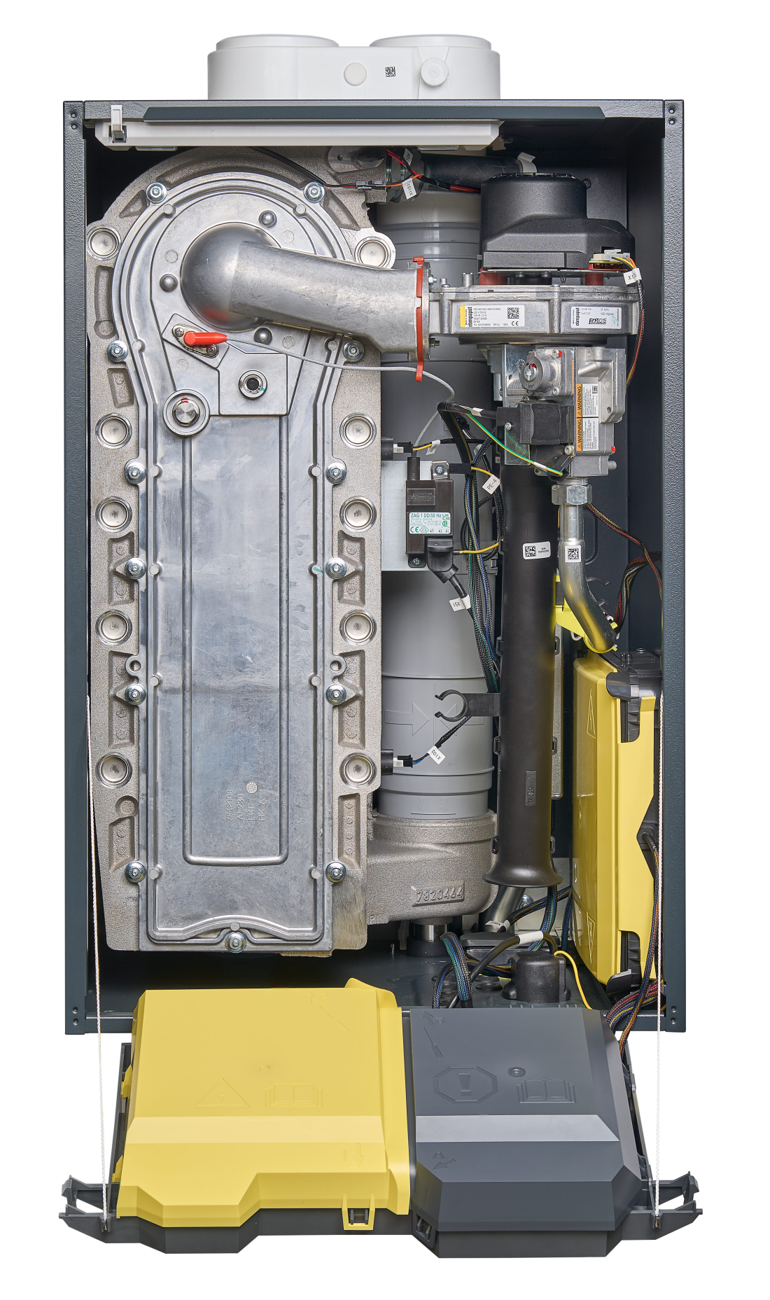 Подключение первичного насоса и управление его модуляцией стали проще благодаря специальному отсеку с быстрыми разъемами, дополнительными выходами и гнездами для каскадного подключения снаружи котла. Это не только удобство для монтажника, но и гарантия корректного подключения и стабильной работы системы.