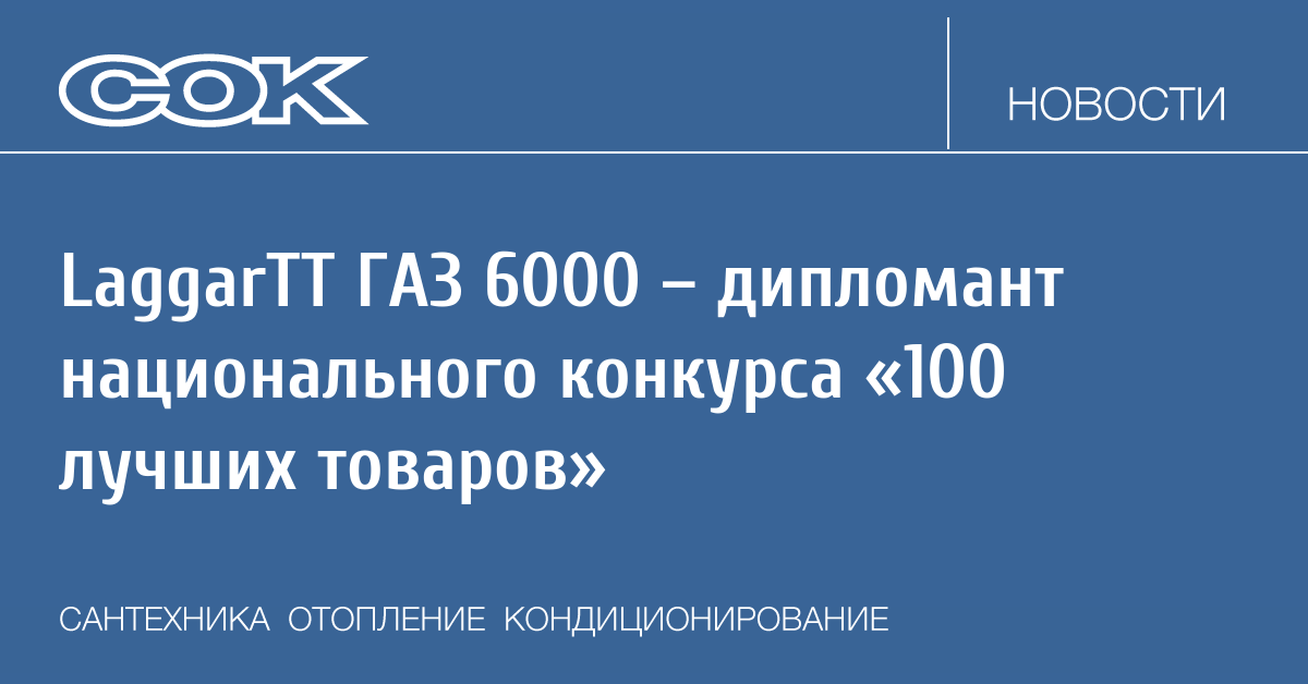 11 декабря прошла торжественная церемония награждения конкурса «100 лучших товаров России», на котором настенный котел LaggarTT ГАЗ 6000 был удостоен звания дипломанта.