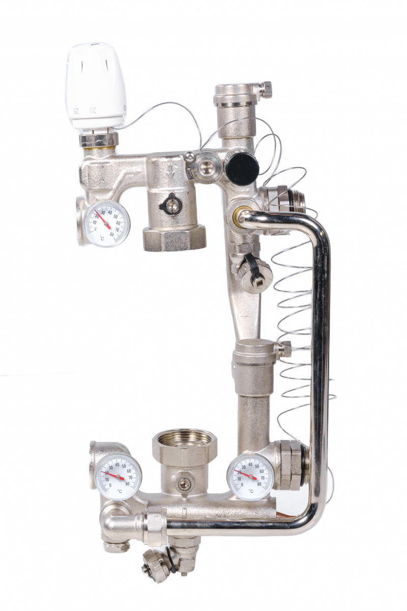 - Три термометра позволяют визуально контролировать работу узла