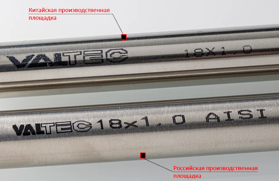 Внешнее отличие: трубы, изготовленные на китайской производственной площадке полированы (более блестящая, глянцевая поверхность), на российской — шлифованные (более матовая поверхность).