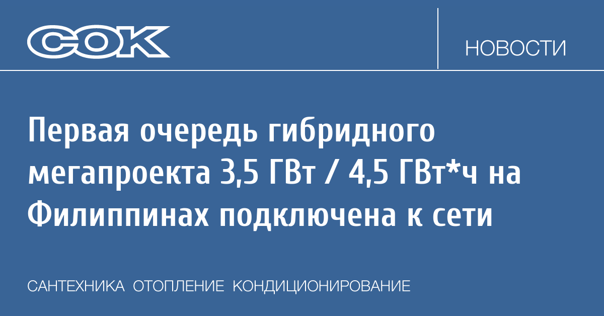 На Филиппинах реализуется «крупнейший в мире» в своём роде гибридный проект энергетики, в котором солнечная генерация мощностью 3500 МВт комбинируется с системой накопления энергии (СНЭ) ёмкостью 4500 МВт*ч.