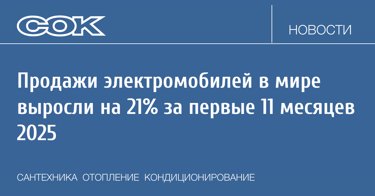 В период с января по ноябрь 2025 продажи электромобилей в мире составили 18,5 млн, что на 21% больше, чем за тот же период прошлого года.