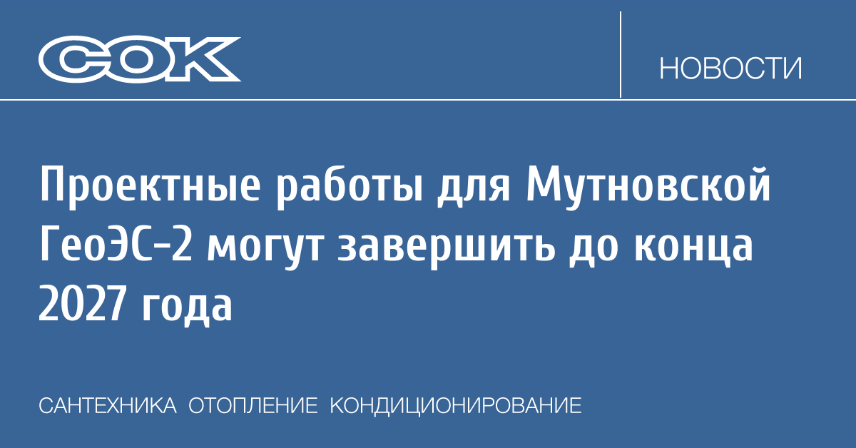Проектные работы и доразведка месторождения для Мутновской ГеоЭС-2 на Камчатке могут быть завершены до конца 2027 года, реализация проекта станции ожидается до конца 2029 года. Об этом в интервью ТАСС заявил министр энергетики Сергей Цивилев.