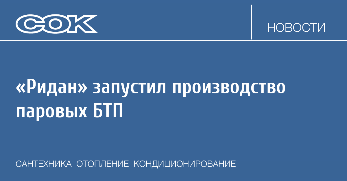 Компания «Ридан» почти 20 лет производит блочные тепловые пункты (БТП). Теперь к ним добавились паровые БТП, расширив возможности для промышленных заказчиков.