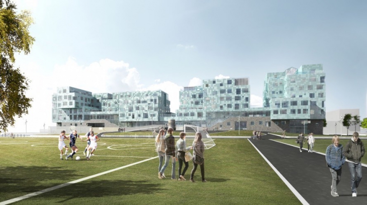 Фасад школы будет состоять из 12 000 стеклянных ФВ панелей сложной формы, которые изящно впишутся в архитектурный облик здания. Прошлым летом архитектурное бюро «C.F. Møller Architects» разработало этот инновационный проект для школы, которая станет самой большой в Дании. Изначально на сайт Inhabitat сообщалось, что панели будут крепиться на крышу и теперь всем не терпится узнать детали нового проекта, по которому будет монтироваться ФВ витражные (оконные) конструкции. Важным шагом на пути к реализации проекта стал поиск поставщика этих уникальных панелей. В компании «Emirates Insolaire» утверждают, что фасад из ФВ панелей будет производить 300 МВт-ч в год. Напомним, что это 50% потребности школы в электроэнергии.
