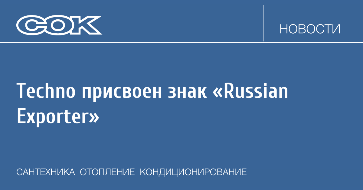 Эксперты РЭЦ провели оценку опыта и деловой репутации компании 'Альянс-Трейд', выпускающей конвекторы водяного отопления Techno, по итогам которой производителю выдан сертификат «Russian Exporter», а также разрешение на использование знака «Russian Exporter». Данные о производителе будут внесены в Реестр добросовестных экспортёров.